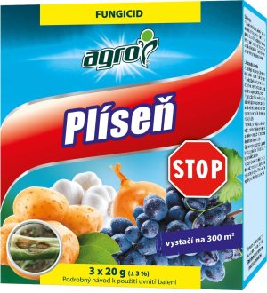 AGRO Plíseň STOP je kontaktní fungicid a baktericid proti širokému spektru chorob. Přípravek používejte k ochraně proti plísním na bramborách, cibuli, révě, okurkách. Aplikujte postřikem nebo rosením dle signalizace nebo preventivně při objevení se prvých příznaků.