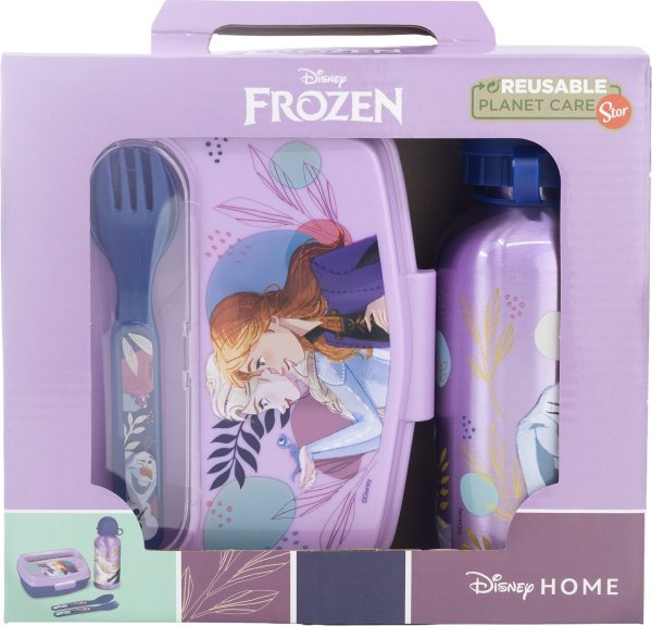 sada obsahuje hliníkovou láhev o objemu 400 ml svačinový box sadu příborů (lžičku a vidličku) bez obsahu BPA