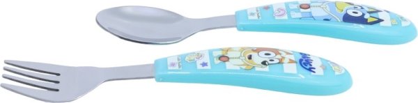 Sada 2 dětských příborů z nerezové oceli, obsahující vidlici a lžíci, s motivem Blueyho. Sada obsahující lžíci a vidličku, která pomůže nejmenším naučit se používat dospělé příbory při jídle zábavným a bezpečným způsobem, díky zaoblenému tvaru. Její originální dekorace s designy inspirovanými oblíbenými postavičkami z filmů a televizních pořadů potěší děti a povzbudí je k používání při každém jídle.