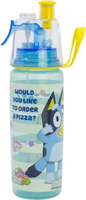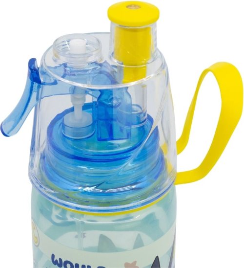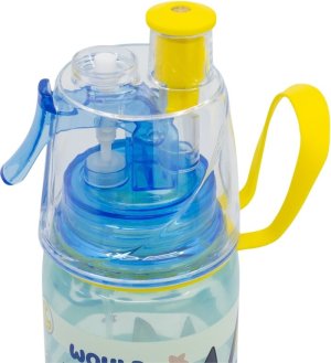 Dětská plastová láhev na vodu s náustkem a rozprašovacím tlačítkem. Vlastnosti: