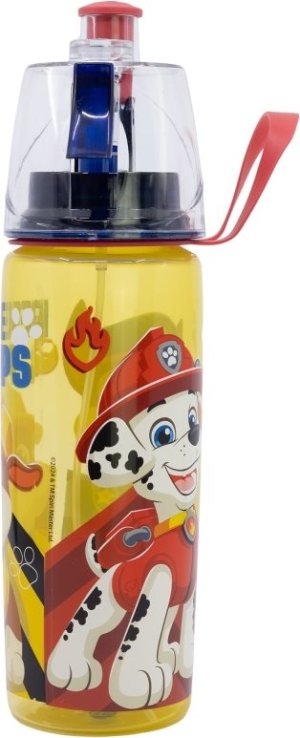 Dětská plastová láhev na vodu s náustkem a rozprašovacím tlačítkem, 575 ml, s motivem Tlapkové patroly. Dětská plastová opakovaně použitelná láhev s náustkem na pití a tlačítkem pro rozprašování vody v horkém období.