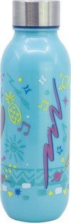 Opakovaně použitelná, odolná plastová láhev s ocelovým šroubovacím víčkem.