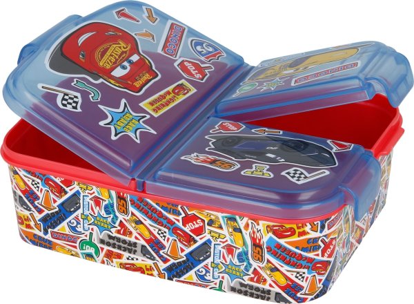 Originální a praktický box na svačinu s více přihrádkami, který si děti mohou s sebou vzít do školy, na hřiště nebo třeba na výlet. Multi box je vyroben z odolného materiálu, vydrží náhodné pády a nárazy při každodenním používání. Tři oddělené přihrádky jsou ideálním řešením pro svačinu o více chodech, které chcete uchovávat zvlášť. V jedné komoře můžete skladovat zdravou zeleninu či ovoce, do druhé připravíte chutný sendvič a do třetí schováte dětem něco dobrého na zub. Box je zdoben atraktivními motivy, děti si ho tak zamilují a rády si ho budou brát všude s sebou. Multi box je vhodný nejen pro ukládání jídla, poslouží i pro úschovu drobných hraček a malých dětských pokladů. Výhody: