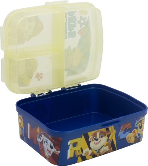 Originální a praktický box na svačinu s více přihrádkami, který si děti mohou s sebou vzít do školy, na hřiště nebo třeba na výlet. Multi box je vyroben z odolného materiálu, vydrží náhodné pády a nárazy při každodenním používání. Tři oddělené přihrádky jsou ideálním řešením pro svačinu o více chodech, které chcete uchovávat zvlášť. V jedné komoře můžete skladovat zdravou zeleninu či ovoce, do druhé připravíte chutný sendvič a do třetí schováte dětem něco dobrého na zub. Box je zdoben atraktivními motivy, děti si ho tak zamilují a rády si ho budou brát všude s sebou. Multi box je vhodný nejen pro ukládání jídla, poslouží i pro úschovu drobných hraček a malých dětských pokladů. Výhody: