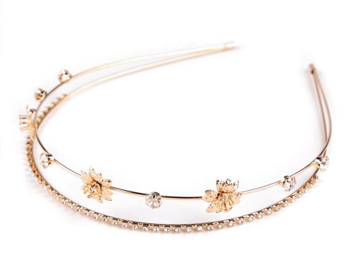 Dvouřadá štrasová čelenka slavnostně dozdobí účes pro jakoukoli příležitost. Vyniká svým rafinovaným designem, který kombinuje jemnost a eleganci. Z kovového drátu je vytvořená konstrukce, na níž jsou pevně připevněná kovová lůžka se skleněnými štrasovými kamínky a květy. Čelenka působí jemným dojmem, díky kamínkům se oslnivě třpytí. Dá se kombinovat s různými druhy účesů, od uvolněných kadeří po elegantní drdoly.