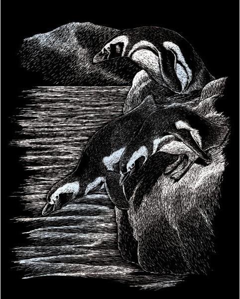 Škrabací obrázky probouzí kreativitu a nadšení a nejen malé výtvarníky zaměstnají na dlouhé hodiny. Papír je potažený černou vrstvou skrývající podklad se stříbrným efektem.