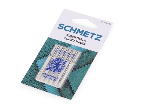 Strojové jehly Schmetz s kulatým dříkem jsou speciálně určené pro starší typy šicích strojů a overlocků, a také vhodné pro šlapací šicí stroje (vyzkoušeli jsme na starém šlapacím šicím stroji značky Singer). Kulatý dřík zajišťuje pevné uchycení jehly. Mají ostrou špičku.