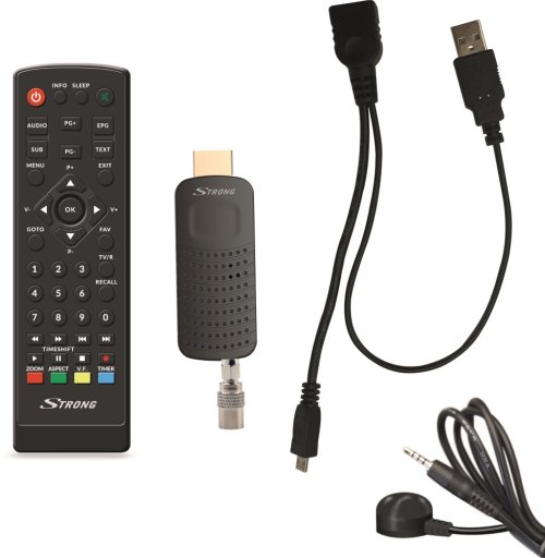 Součástí balení je micro USB napájecí kabel, redukce antény F/ IEC a dálkové ovládání.