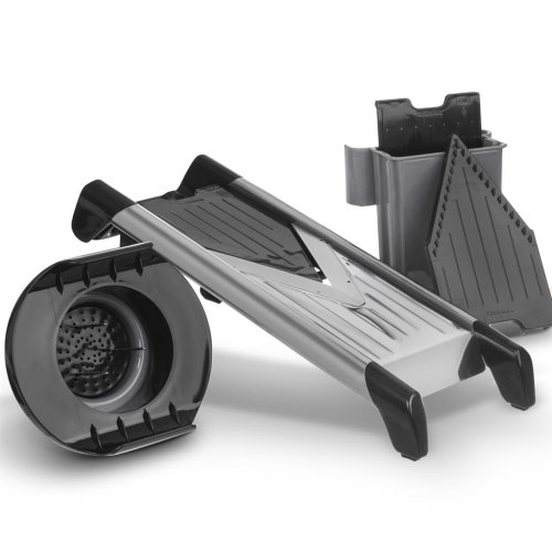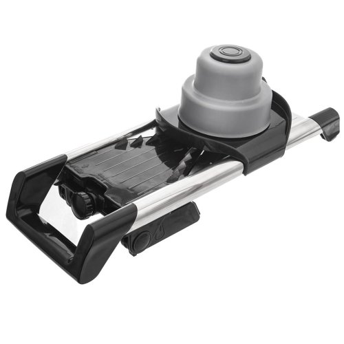 Víceúčelové struhadlo zeleniny a ovoce. Opatřeno výměnnými struhadly, které umožňují plátkování, strouhání úzkých i širších hranolů zeleniny - např. oblíbených bramborových hranolků. Výměnné části jsou opatřené ostrými nerezovými břity. Je možné regulovat tloušťku plátků/hranolků od 1 mm do 6 mm. Součástí vodící rukojeť, pomocí které potravinu strouháte, aniž byste se zranili. Sklápěcí protiskluzové nožičky zajistí správný náklon a stabilní umístění na plochu, také ušetří místo při skladování. Materiál plast/nerez ocel. Rozměry 41 x 13 x 13 cm. Není vhodné do myčky nádobí. EAN 8592381166274