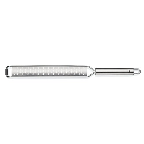 Struhadlo na sýr Rondo od značky KELA je vyrobeno z kvalitní nerezové oceli a nabízí elegantní a praktické řešení pro strouhání sýrů a dalších ingrediencí. Jeho dlouhá rukojeť a dostatečná velikost umožňují pohodlné a efektivní strouhání i větších množství surovin. Díky vysoce kvalitnímu nerezovému materiálu je struhadlo odolné, snadno se čistí a dlouho vydrží.