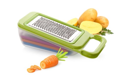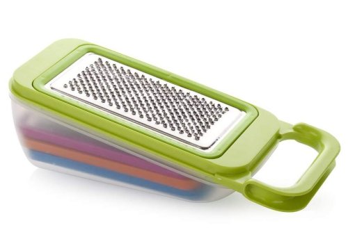 4dílná sada struhadel se zásobníkem, délka 26 cm, šířka 10,2 cm, výška 10,8 cm, nerezová síta, mix barev - oranžová, růžová, zelená, modrá.