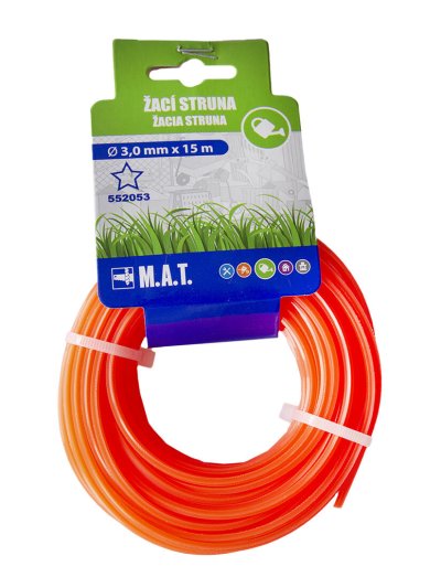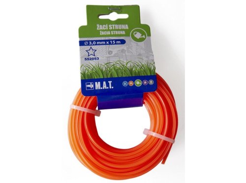 Kvalitní žací struna do všech druhů vyžínačů. Materiál polyamid s přísadami pro zajištění pevnosti a pružnosti. Profil šesticípá hvězda. Průměr 3 mm a délka návinu 15 m. EAN 8590804020431