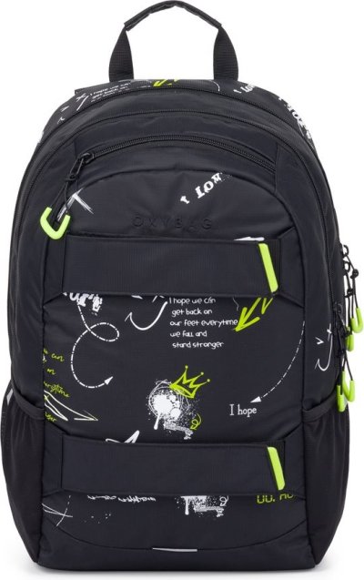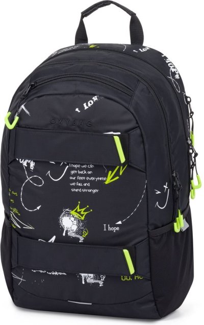 Výhodný set batohu a studentské etue. Batoh: Studentský i volnočasový školní batoh řady OXY SPORT vyniká ergonomicky tvarovanými zády, nastavitelnými polstrovanými ramenními popruhy a hrudním popruhem, díky kterým se pohodlně nosí. Batoh se skládá ze dvou hlavních komor a jedné menší přední kapsičky opatřenými pevnými zipy a praktickými poutky. Uvnitř batohu je vyztužená kapsa na notebook, karabina na klíče, menší kapsa na drobnosti a skrytá kapsa na zádech. Nechybí také boční kapsa na lahev na pití a řada reflexních prvků, díky kterým je batoh lépe viditelný. Batoh je ideální jak pro školáky na druhém stupni tak i pro volnočasové aktivity studentů a dospělých. Délka zádového panelu je 46 cm, objem činí 24 l, hmotnost batohu je 870 g a jeho nosnost je 8 kg. Etue: Studentské pouzdro na psací potřeby s praktickou elastickou gumou, uzavírání na zip.