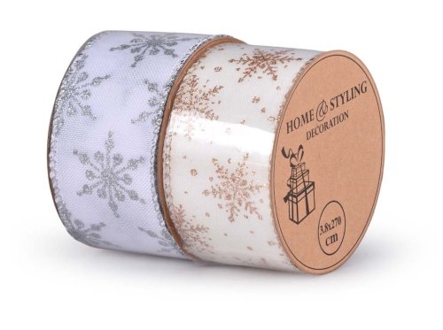 Stuha 2700x38mm potisk mix, box, zlatá, štříbrná
