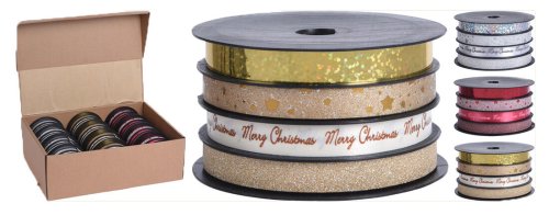 Stuha vázací 4 m x 1 cm, GLITTER mix STŘ / ZLA / ČRV (4 ks)
