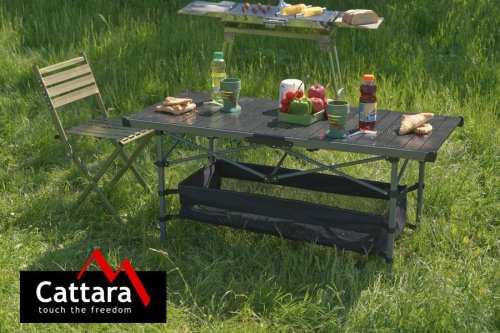 Vyrazte do kempu, k vodě nebo využijte hezkého počasí a přespěte s přáteli pod stanem. Vezměte si s sebou skládací kempingový stůl Cattara Roll. Odložíte na něj třeba tácek s grilovaným masem nebo zeleninou a v klidu se najíte. Konstrukce a deska z lamel umožňují snadné sestavení stolu. Jelikož má malé rozměry, po rozložení ho umístíte do pouzdra (součástí balení). Zjednodušíte si tím jeho přenášení.