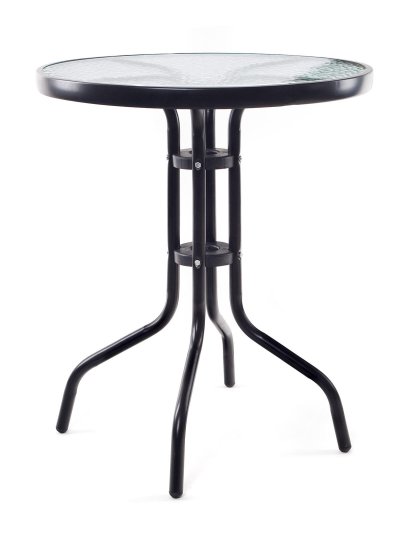 Kovový stolek se skleněnou deskou v černém provedení je vhodný všude tam, kde potřebujete větší stabilní rovnou plochu. Stolek je lehký, snadno se s ním manipuluje. Stolek využijete na zahradě, terase nebo balkónu.