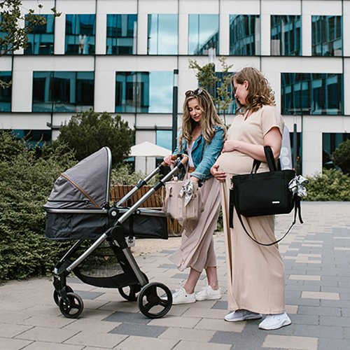 Taška do kočárku Carmen je módní městská taška, která se hodí pro každou maminku. Kombinuje kompaktní velikost s jedinečnou kapacitou a stylem. Je ideální pro procházky, když chcete mít s sebou to nejnutnější. Vnitřek tašky ukrývá 9 praktických kapes, přebalovací podložku, držák na klíče/dudlík.