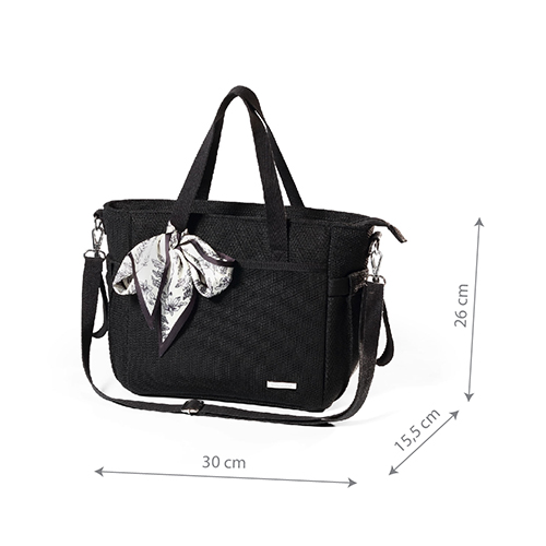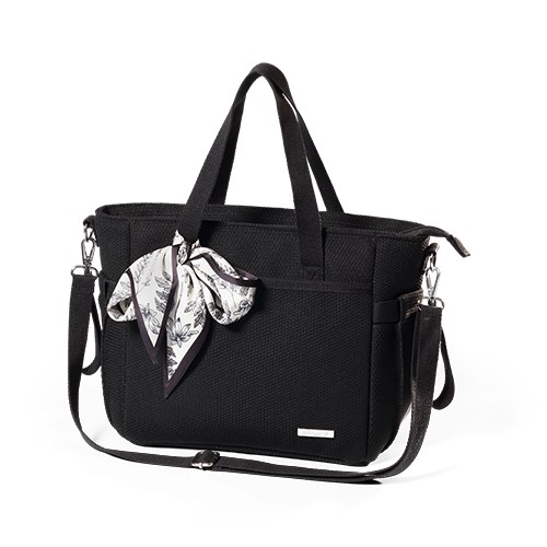Můžete ji jednoduše připevnit na kočárek, nosit na rameni nebo držet v ruce – dle vlastního uvážení. Stylový šátek tašku krásně ozdobí. Vše, co musíte udělat, je rozhodnout se, kam šátek uvázat.