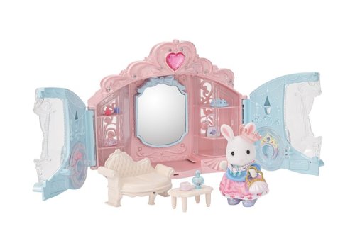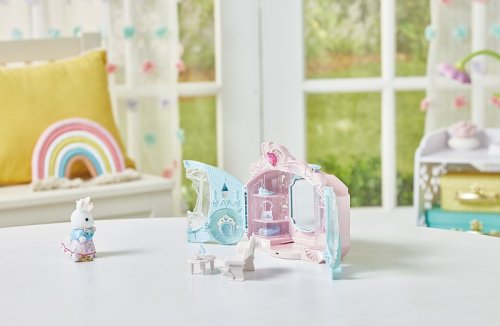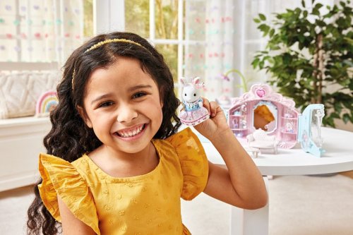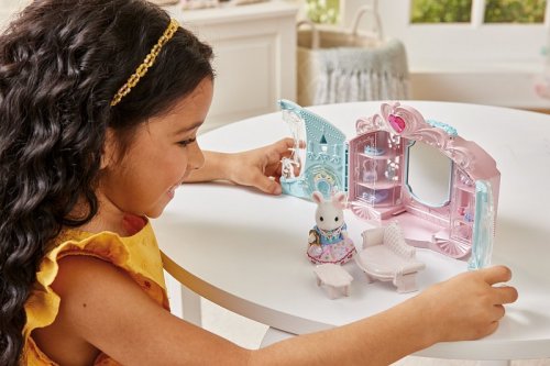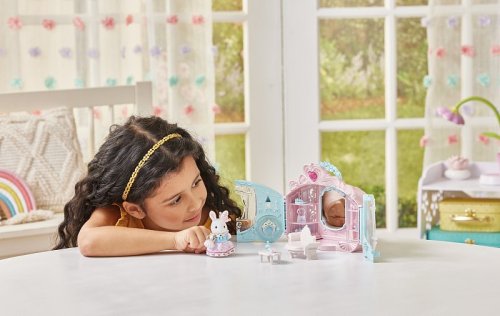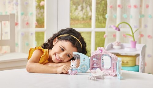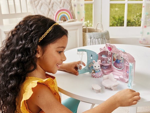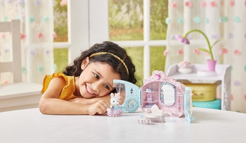Hrací sada Sylvanian Families Stylový šatník obsahuje krásný třpytivý kočár, doplňky a figurku holčičky z rodiny Sněžných králíků oblečenou do princeznovských šatiček. Stačí otevřít dvojité dveře a kočár se promění v krásnou stylovou komnatu se spoustou skvělých doplňků a polic, na které je můžete vyskládat. Sada obsahuje doplňky pro vytváření těch nejmódnějších outfitů. Kočár má rukojeť, takže ho lze použít k přenášení figurek a doplňků. Figurky a doplňky ze sady lze kombinovat s dalšími sadami, domečky a doplňky Sylvanian Families. Hračky Sylvanian Families vyrábí japonská společnost Epoch již více než 35 let. Vyznačují se výjimečnou kvalitou a smyslem pro detail. Figurky mají pohyblivé hlavičky, ručičky a nožičky. Doporučujeme od 3 let věku.