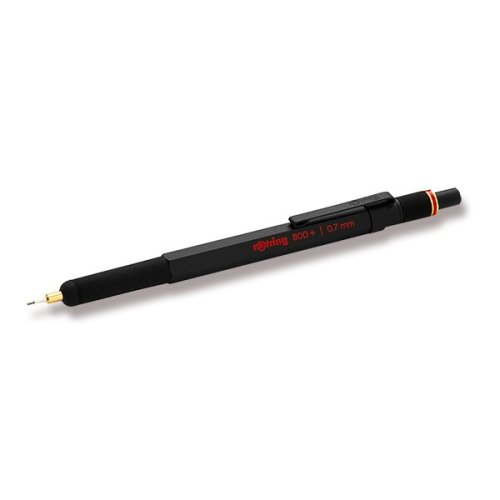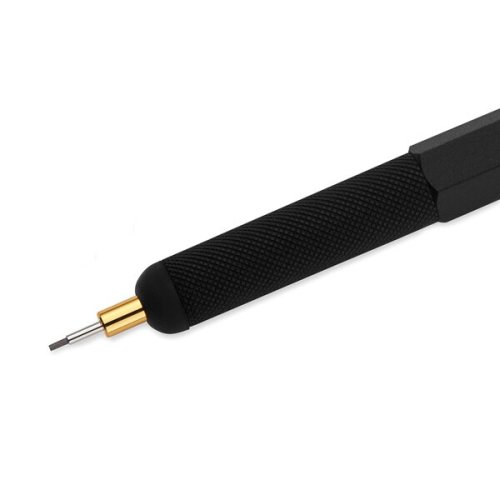 Celokovové šestiboké tělo s protiskluzovou rýhovanou úchopovou částí a se zlatými prvky. Matně černě lakované mosazné tělo v kombinaci s doplňky v dané barvě., Zatáhněte tuhu a používejte stylus bez nutnosti otáčení mikrotužky. Měkká špička stylusu hladce klouže po povrchu a je kompatibilní se všemi dotykovými obrazovkami. Vyměnitelný., Mechanická tužka (mikrotužka):, * otočný mechanismus, * tuha HB o síle 0,7 mm, * vestavěná a vyměnitelná gumovací pryž pod krytem víčka, * nastavitelný indikátor tvrdosti tuhy pro snazší orientaci při práci, * včetně stylusu v úchopové části, Dodáváno v trojhranné dárkové krabičce., Rotring je ideální psací nástroj pro každou příležitost., TIP: Přečtěte si, jaký je rozdíl mezi mikrotužkami Rotring 500, 600 a 800 >>