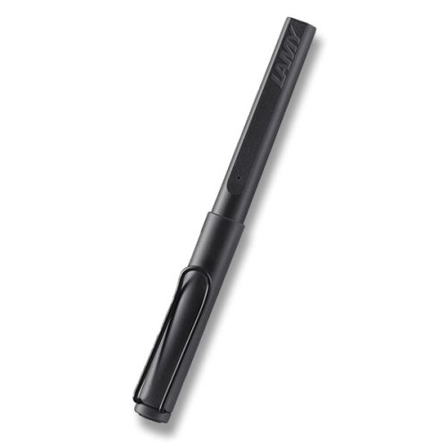 Stylus pen Lamy Safari Note+ v provedení All Black má tělo z matného plastu, nasazovací víčko a odpružený kovový klip poražený černou barvou. Úchopová zóna je ergonomicky tvarovaná v černé barvě.