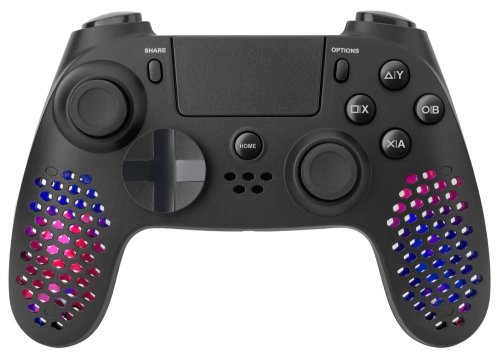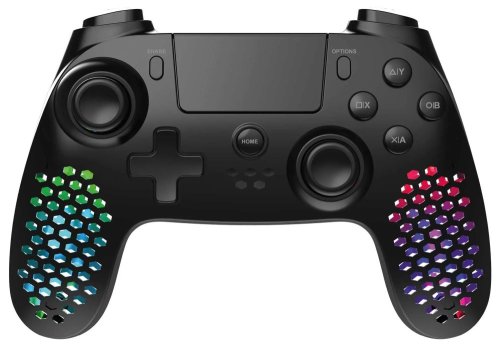 Lehký bezdrátový gamepad založený na technologii Bluetooth podporuje připojení k počítači nebo herní konzoli PS4 a PS3. Díky vibracím nabízí realistický zážitek ze hry. Disponuje přizpůsobitelným joystickem, směrovým D-padem s různými tvary a 17 tlačítky, se kterými budete mít všechny herní funkce vždy na dosah ruky. Jedinečný perforovaný design ovladače skvěle doplňuje nastavitelné RGB podsvícení. K dispozici je navíc také 3,5 mm jack konektor pro připojení sluchátek. Napájení zajišťuje integrovaná baterie, její dobíjení pak přiložený nabíjecí kabel.