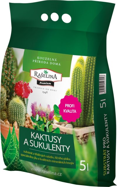 Substrát pro kaktusy, sukulenty (suchovzdorných jedinců) a rostliny s podobnými nároky na půdní prostředí. Obsahuje potřebné množství základních živin a důležité stopové prvky, zabraňuje nadměrnému růstu a zlepšuje tvorbu květů, zabraňuje vzniku kořenových chorob. Balení: 5 l.