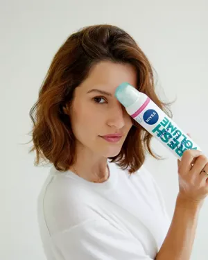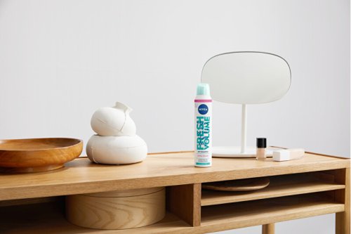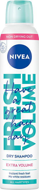 Budík nezazvonil? Svěží vlasy s objemem můžete mít už za 10 vteřin. Vyzkoušejte NIVEA suchý šampon Fresh Volume. Máte domluvenou schůzku, ale vaše vlasy protestují? Dodejte jim svěží vzhled a objem, než řeknete švec. Inovativní veganské složení suchého šamponu Fresh Volume vás zachrání. Stačí ho protřepat, nastříkat, vmasírovat a můžete vyrazit. Rýžové výtažky absorbují přebytečnou mastnotu a vaše vlasy budou vypadat jako čerstvě umyté. Šampon je vhodný pro všechny typy vlasů. A co je nejlepší? Že jste ho použili nikdo nepozná, protože bílé stopy po spreji vám se suchým šamponem Fresh Volume nehrozí. Osvěžte své vlasy a dodejte jim 24hodinový objem.