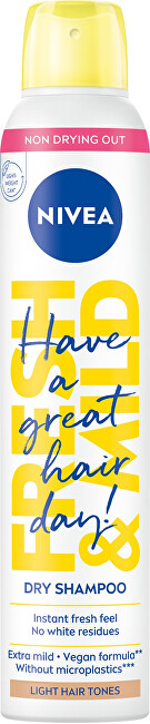 Použijte na vaši blonďatou hřívu suchý šampon na vlasy Fresh & Mild, který osvěží vaše vlasy od kořínků. Dodejte vlasům potřebný objem.