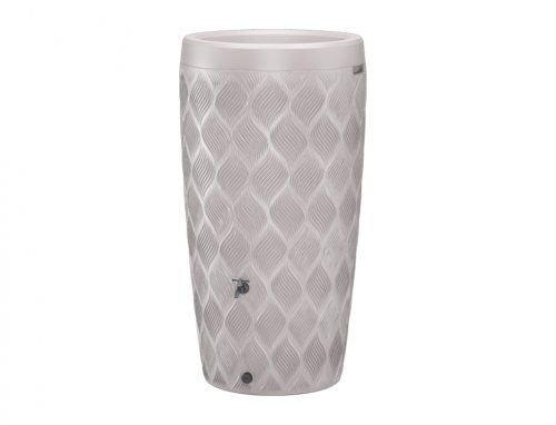 Plastový barel v elegantním designu s 3D efektem a dekorem pramenů v designové řadě Flow. Víko tvoří nádoba vhodná pro osázení rostlinou. Barel je vhodný pro shromažďování a uchovávání dešťové vody pro zalévání se dvěma otvory se závitem pro připevnění výpustného kohoutku nebo zahradní hadice. Výpustní ventil není součástí balení. Kompatibilní ventil má NG číslo: 77296xx. Objem: 240 l. Šířka: 60 cm, výška: 112 cm. Barva: světle šedá.