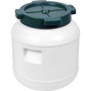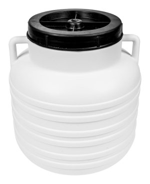 Plastový sud na zelí se šroubovacím víkem o objemu 10 litrů.