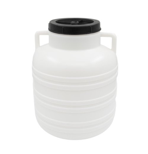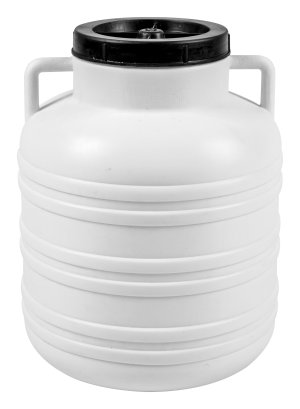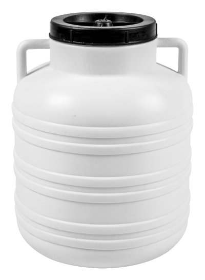 Plastový sud na zelí se šroubovacím víkem, o objemu 20 litrů."
