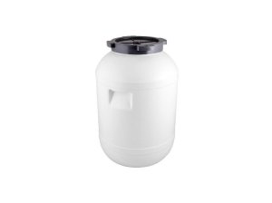 Sud na zelí. Plastový sud na zelí se šroubovacím víkem. K naložení zelí se používají sáčky.