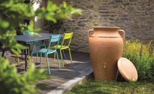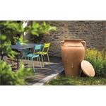 Sud na dešťovou vodu Prosperplast HELENA nabízí kapacitu 300 litrů a atraktivní vzhled inspirovaný středomořskou amforou. Jeho dvojitý designový povrch – z jedné strany hladký, z druhé imitující staré opotřebení – přidává na autentičnosti. Kromě designu potěší i funkčnost – 2 výpustné otvory s mosazným závitem pro připojení kohoutku nebo hadice, horní přítok vody a snadné vyprázdnění před zimou. Dešťová voda je bez chlóru a vápníku, což prospívá nejen rostlinám, ale i závlahovým systémům.