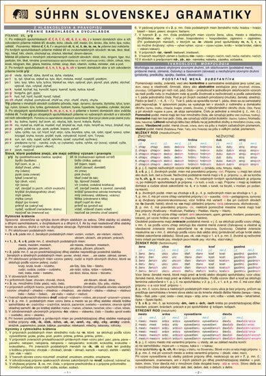 Koncentrovaný přehled slovenské gramatiky ve slovenštině – sumarizuje učební látku: hláskosloví, tvarosloví, skladba. Přehledné členění, grafická úprava a volba barev umožňuje rychlou orientaci v textu a snadnější zapamatování.