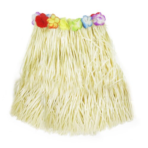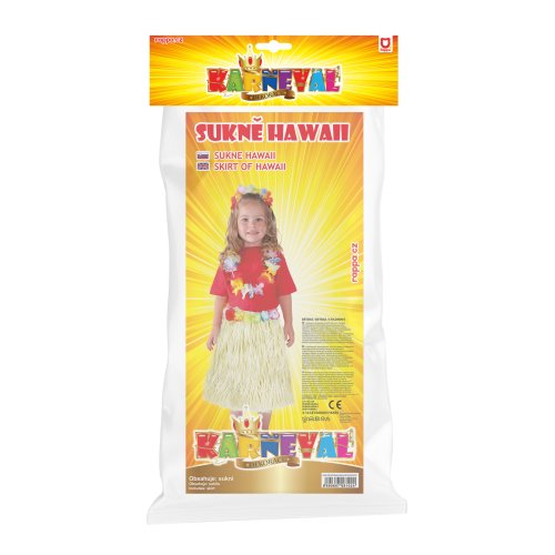 Senzační sukýnka ve stylu "Havaj" je ideálním doplňkem na karneval nebo k typickému havajskému tanci "HULA"! Sukýnka je určena pro holčičky ve věkovém rozmezí 3-10 let (104-150 cm). Sukně, dlouhá 45 cm, je vyrobena z tenkých igelitových pásků v přírodní barvě a zdobena barevnými okvětními lístky. Balení obsahuje pouze sukni.