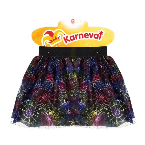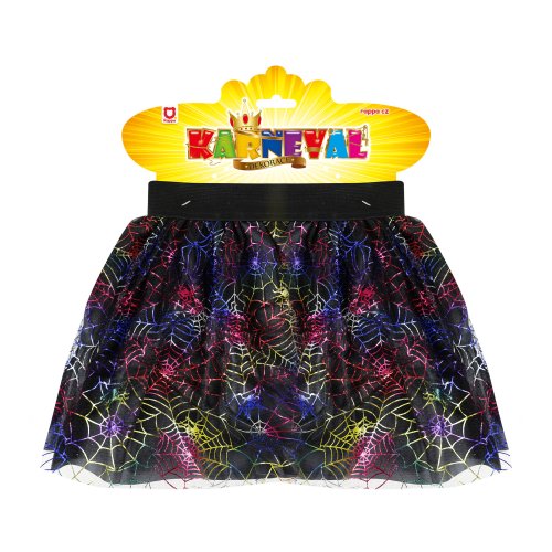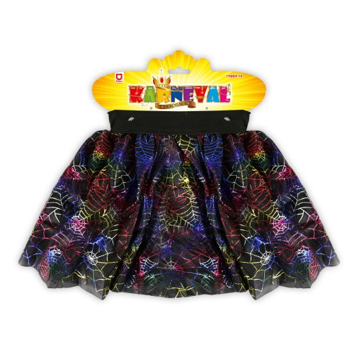 Sukně tutu pro všechny malé parádnice čarodějnice! Sukýnka má černou spodničku, překrytou tylem potištěným barevnými pavučinkami. Je určena pro holčičky ve věkovém rozmezí 3-7 let. Délka sukně je 28 cm. Skvěle se hodí i na oslavu Halloweenu nebo karneval!