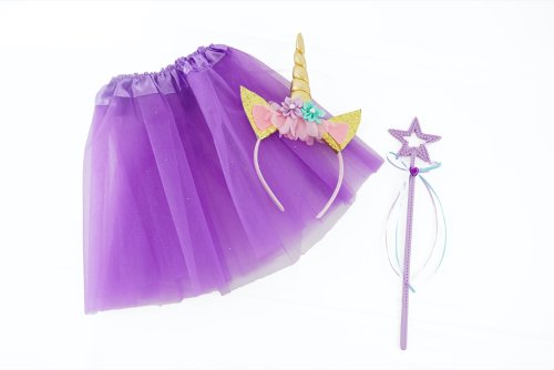 Sada sukýnky, čelenky jednorožce a kouzelné hůlky pro všechny malé parádnice. Vnitřní průměr čelenky cca 11 cm.