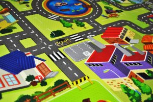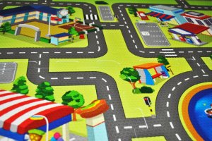 Celopotištěný pěnový podlahový koberec s rovnými okraji. Velmi oblíbené u dětí - nejmenší děti zaujme barevností, později budou nejen chlapečkové jezdit autíčky po cestičkách, chodit s panáčky přes přechody pro chodce, vozit děti do školy, maminky do obchodu a tatínky do továrny. Když si s ním nikdo nebude hrát, může být třeba pověšený na stěně. Pěnové puzzle je ideální a praktické jako koberec nejen do dětských pokojíčků, ale všude tam, kde si hrají děti a plovoucí podlaha, dlažba nebo linoleum jsou příliš chladné. Pěnové podlahové puzzle je měkké, omyvatelné, zdravotně nezávadné, tlumí hluk a skvěle izoluje. Tloušťka puzzle je 10 mm. Pro děti od 10 měsíců, odpovídá českým a slovenským bezpečnostním normám, certifikace CE.
