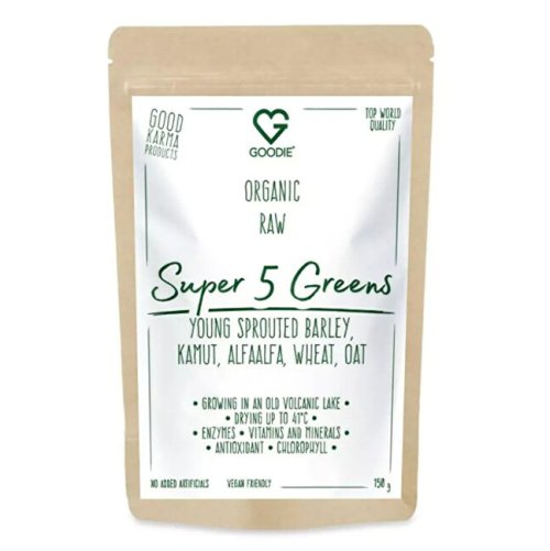 Super 5 Greens je unikátní směs sušených šťáv z funkčních zelených superpotravin v koncentrované formě. Obsahuje mladé výhonky ječmene, vojtěšky, kamutu, pšenice a ovsa – přirozený zdroj chlorofylu, vitamínů, minerálů, enzymů a antioxidantů. Vhodné pro každodenní podporu zdraví, vitality a rovnováhy organismu. Dopřejte tělu pořádnou porci živin v každé sklenici.