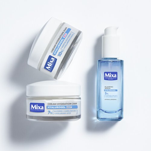 Objevte sérum HYALUROGEL na citlivou pleť od Mixy. S vysokým obsahem expertních ingrediencí: 5 % vitamínu B3 + provitamín B5 + čistá kyselina hyaluronová. Sérum pomáhá zklidnit citlivou pleť od 1. použití, snižuje nepříjemné pocity a stáhnutí pleti. Poskytuje intenzivní hydrataci po dobu 24h pro viditelně vyplněnou vlhkostí.