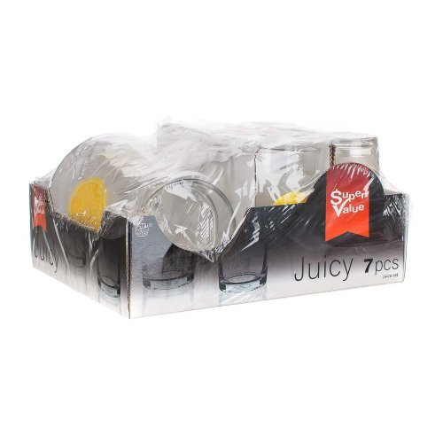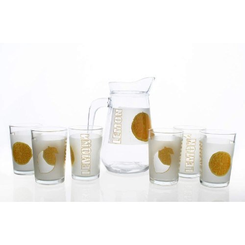 7dílný džbánový set LEMON obsahuje: 1x džbán o objemu 1 l a 6 sklenic o objemu 230 ml, běžné stolní sklo v čirém provedení s dekorem citron.