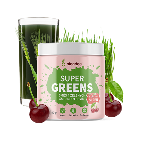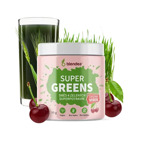Višeň k zeleným superpotravinám krásně sedí. Je svěží, zároveň sladká a pozitivně naladí každé ráno. Podpořte svou imunitu a trávení chutně směsí Supergreens s příchutí višeň.