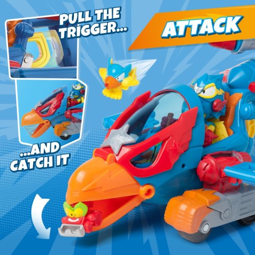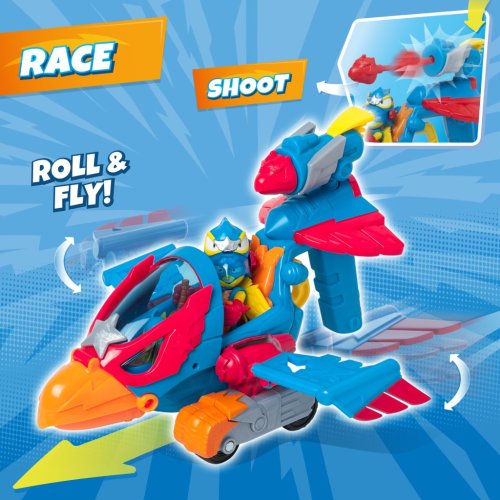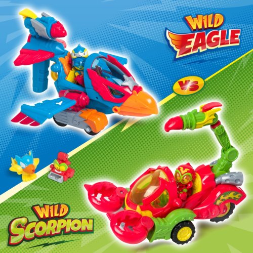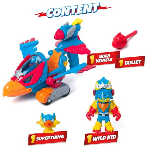 Bojujte na zemi i ve vzduchu s Wild Eagle Jetem a vozidlem Wild Scorpion! S jejich silnými zvířecími útoky a zkušenými piloty vás čeká ten nejdivočejší souboj! Uvolněte plnou sílu orla s exkluzivním Kidem a SuperThingem, kteří mohou létat v kokpitu. Jet při pohybu pohybuje křídly nahoru a dolů. Stiskněte spoušť a sestřelte padouchy nebo je chyťte v zobáku. Obsah balení:• 1 vozidlo• 1 exkluzivní Wild Kid• 1 exkluzivní Wild SuperThing• 1 střela