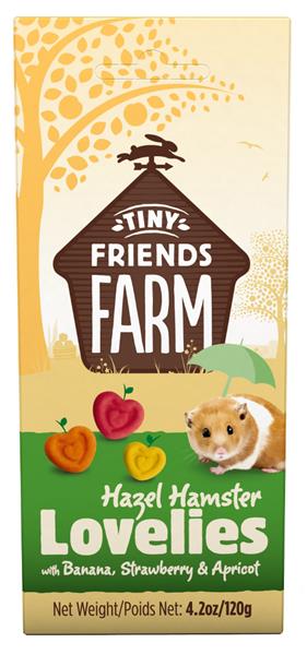 Doplňkové krmivo pro drobné savce Supreme Tiny FARM Hazel Hamster Lovelies s jahodami, meruňkami a banány jsou výborné sušenky vhodné pro všechny králíky, morčata, křečky, činčily, pískomily, myši a potkany. Před i po otevření skladujte na suchém a chladném místě. Složení: Pšeničná mouka, cukr, sójový olej, meruňky (9 % v oranžových sušenkách), jahody (9 % v červených sušenkách), banány (9 % ve žlutých sušenkách). Doplňkové látky: Barviva. Krmný návod: Podávejte jako pamlsek, který doplňuje obvyklou stravu vašeho zvířátka. Podávejte 1-2 kousky denně v závislosti na velikosti vašeho zvířátka. Zajistěte neomezený přístup k čerstvé vodě.