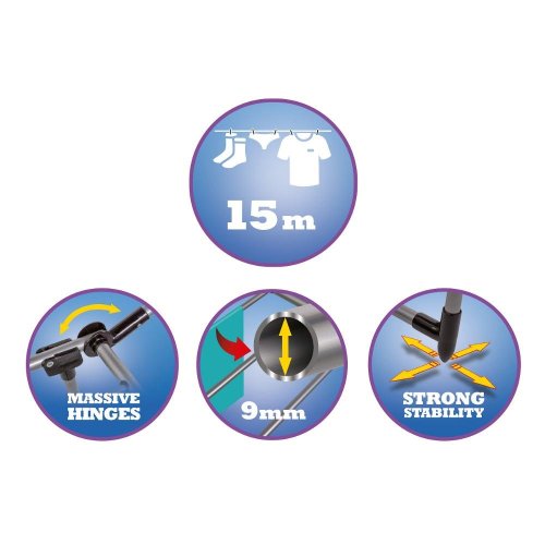 Rozkládací sušák na prádlo vhodný do interiéru, balkonu, terasy nebo lodžie Sušák lze snadno sklopit nebo rozložit podle potřeby Má stabilní konstrukci z lakované oceli a plochu pro sušení 15 m, která umožňuje efektivnísušení prádla Výhodou jsou silné dráty, které zabrání mačkání prádla Nosnost sušáku je 15 kg