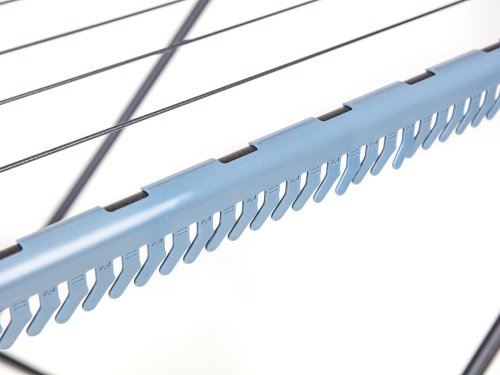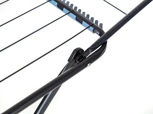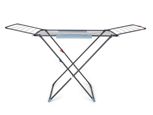 Stabilní přenosný sušák na prádlo ONYX nabízí 18 metrů sušící plochy, což představuje až dvě plné pračky prádla. Boční křídla jsou vhodná na sušení delšího prádla. Praktickým pomocníkem je držák na sušení ponožek. Pro lepší manipulaci je sušák opatřený 2 kolečky. Velkou výhodou je stabilní konstrukce, tvořená kovem v antracitové barvě a plastem v antracitové barvě.
