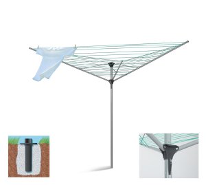 Venkovní sušák 40 m, 3 ramenný má velmi pevnou ocelovou konstrukci. Šňůra je ve dvou barevných provedeních - bílá a šedá. Součástí výrobku je zemní objímka. Sušák má kapacitu cca 3 praček.