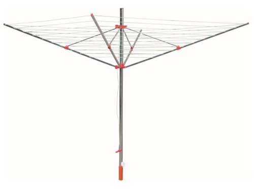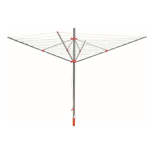 Venkovní zahradní rozkládací sušák vhodný na jarní a letní sušení prádla na zahradě s jednoduchým systém uchycení, zároveň je odolný vůči rozmarům počasí. Součástí balení je plastové pouzdro, které je určeno k zabetonování do země a bezpečnému uchycení sušáku.